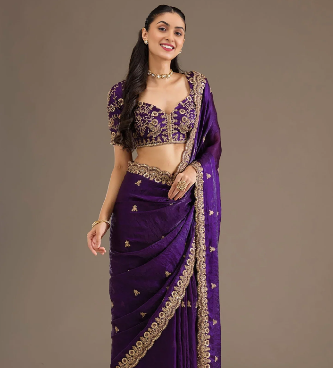 Color plays an important role in defining the elegance of traditional outfits. The Purple Saree stands out for its rich and sophisticated appearance.